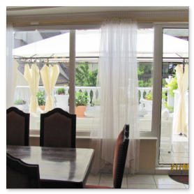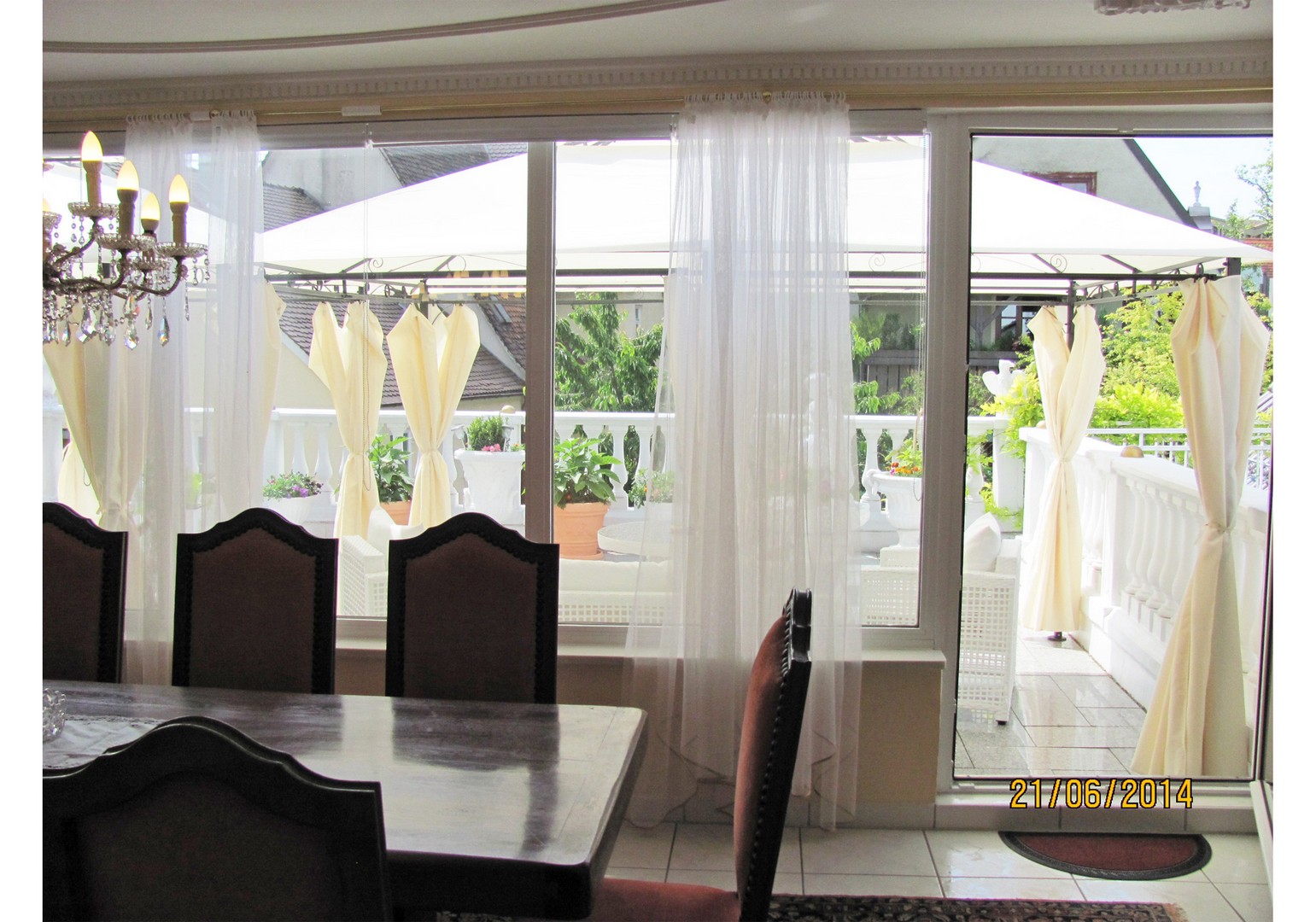 - Terrace facing SOUTH with pavilion (in summer) and balustrade.