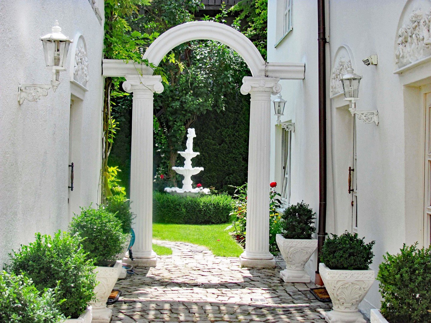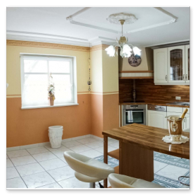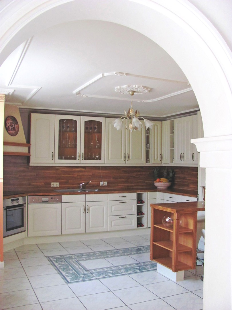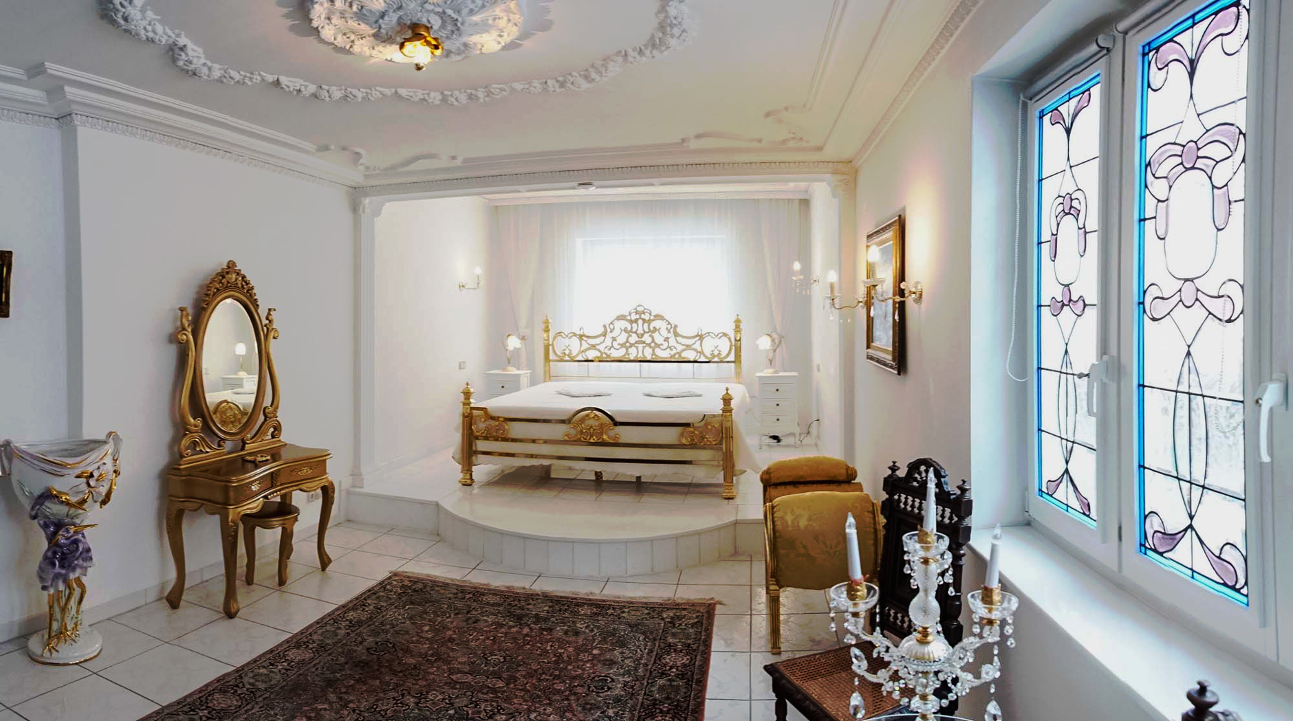 - Precious stucco work everywhere on ceilings and walls, e.g. T. valuable painting on the walls, many arches, z. T. leaded windows, crystal chandeliers and crystal wall lights in several rooms.